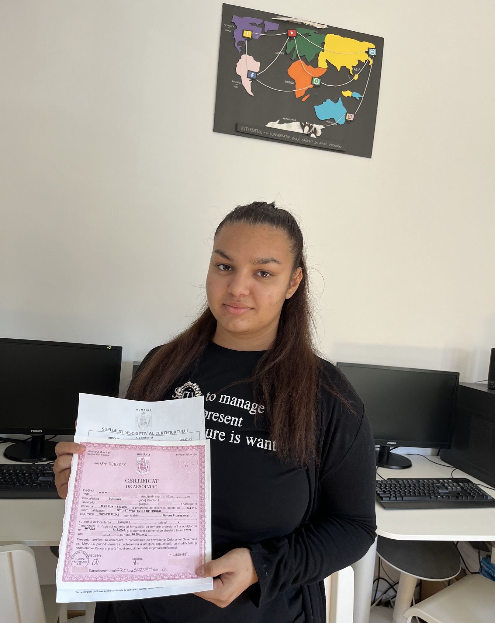 Eine erste junge Frau freut sich bereits über ihr Diplom als „Nagelstylistin“. Sie hat in diesem Jahr eine Berufsberatung und einen Qualifizierungskurs in Anspruch genommen. Bereits im letzten Jahr haben sich junge Frauen in diesem Bereich qualifiziert. Der Unterstützungsprozess wird mit Finanzberatung, Karriereberatung, Bewerbungsportfolio und anderen Unterstützungsleistungen für die Eingewöhnung in einen Arbeitsplatz fortgesetzt. Heute können wir aber nur gratulieren.
